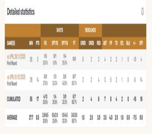 三場比賽陳盈駿場均25.7分鐘,拿到24.3分5助攻3.3籃板2搶斷,命中率65.8%,三分命中率64.7%,罰球命中率92.3%。