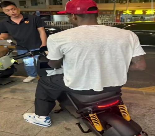 不久前有媒體上傳視頻,畫面中是廣東隊新外援薩姆納,他購買了電動車,此刻已經騎上了。