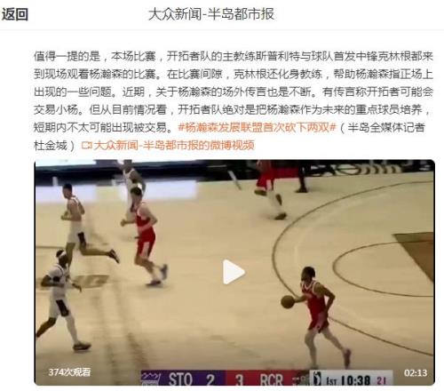如今開拓者已經宣布將楊瀚森召回球隊,針對楊瀚森近期來回奔波征戰的情況,青島男籃隊記杜金城給出解析:“近期關于楊瀚森的場外傳言不斷,有傳言稱開拓者可能會交易小楊(楊瀚森)。但從目前情況看,開拓者絕對是把楊瀚森作為未來的重點球員培養,短期內不太可能出現被交易。”