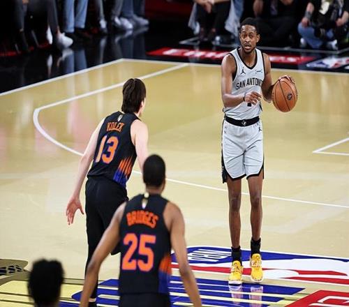 本場(chǎng)比賽中,馬刺的先發(fā)控衛(wèi)達(dá)隆-福克斯(De'Aaron Fox)顯然并沒(méi)有發(fā)揮出自己的實(shí)力。福克斯全場(chǎng)出場(chǎng)31分40秒,投籃13中5,三分線外6中2,罰球6中4,得到了16分2籃板9助攻1搶斷的數(shù)據(jù),還有5次失誤和3次犯規(guī),正負(fù)值為-4。福克斯在本場(chǎng)比賽中完全沒(méi)有展現(xiàn)出自己的得分能力,他的進(jìn)攻效率并不理想,他的突破成功率非常有限,外線投籃方面的表現(xiàn)也并不是特別理想。福克斯展現(xiàn)出了一定的傳球能力和組織能力,然而他在失誤控制方面也存在著不小的問(wèn)題。不僅如此,福克斯在防守端的表現(xiàn)也是比較一般的,貢獻(xiàn)度同樣是非常有限的。福克斯本應(yīng)該是球隊(duì)的后場(chǎng)核心,然而至少在本場(chǎng)比賽中,他并沒(méi)有很好地扮演自己的角色,并沒(méi)有將自己在進(jìn)攻端的全能性發(fā)揮出來(lái),這也在一定程度上導(dǎo)致了球隊(duì)的這場(chǎng)失利。